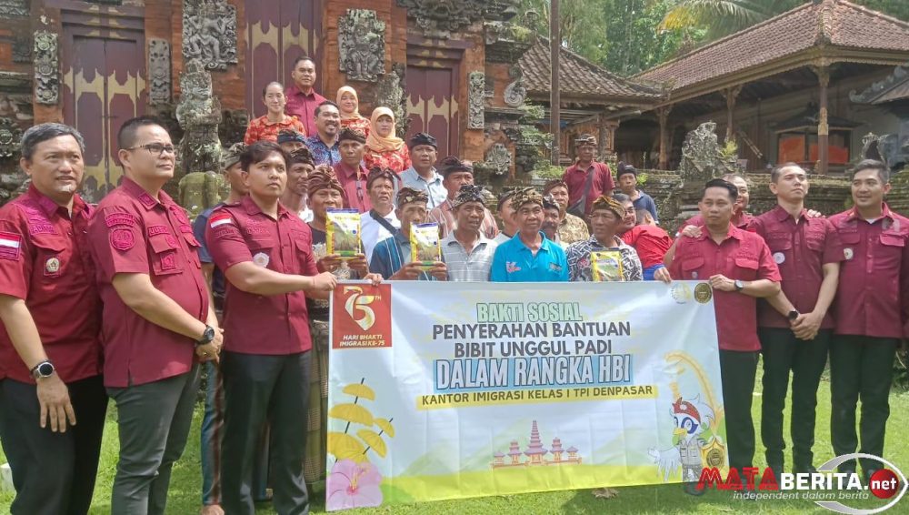 Tabanan, mataberita.net — Dalam rangka memperingati Hari Ulang Tahun (HUT)Imigrasi ke-75, Kantor Imigrasi (Kanim) Kelas I TPI Denpasar melaksanakan kegiatan bakti sosial (baksos) di Balai Subak Penataran, Desa Marga, Tabanan, pada Kamis (16/01/2025). Pada kegiatan ini, sebanyak 615 kg benih padi unggul kualitas grade A diserahkan kepada para petani sebagai bagian dari program mendukung Asta Cita Presiden Republik Indonesia. Penyerahan bantuan ini juga merupakan salah satu fungsi imigrasi sebagai fasilitator pembangunan ekonomi.