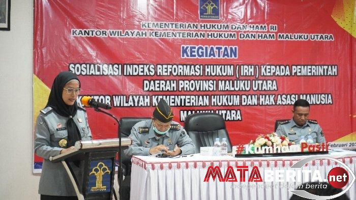 Malut, mataberita.net — Kantor Wilayah Kementerian Hukum dan HAM Maluku Utara (Kanwil Kemenkumham Malut) melakukan Sosialisasi Indeks Reformasi Hukum bersama Pemprov Maluku Utara. Adapun lokasi kegiatan di Ruang Aula Gamala pada Rabu (28/02/2024). Kegiatan ini diikuti oleh Kepala Divisi Pelayanan Hukum dan HAM Aisyah Lailiyah, Pejabat Administrator dan Pemerintah Daerah se Malut. Mengawali sambutan, Aisyah menyampaikan. Indeks Reformasi Hukum (IRH) merupakan wujud dari upaya penilaian terhadap penataan regulasi. Yang mana berkualitas pada Kementerian/Lembaga dan Pemerintah Daerah (Pemda).