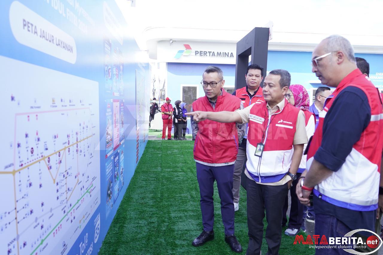 Jakarta, mataberita.net — Pertamina berkomitmen memastikan pasokan dan distribusi BBM maupun LPG selama masa Ramadan dan Idul Fitri aman dan lancar. Guna memastikan hal tersebut, Wakil Direktur Utama Pertamina Wiko Migantoro melakukan kunjungan ke sejumlah sarana dan fasilitas Pertamina yang akan dilalui oleh pemudik pada rute Jakarta-Bandung. Sejumlah fasilitas tersebut antara lain SPBU rest area KM 57 A Tol Jakarta-Cikampek, SPBU rest area KM 88 A dan SPBU 34.402.27 Bandung. Turut mendampingi dalam kunjungan ini Direktur Pemasaran Pusat dan Niaga PT Pertamina Patra Niaga Maya Kusmaya.